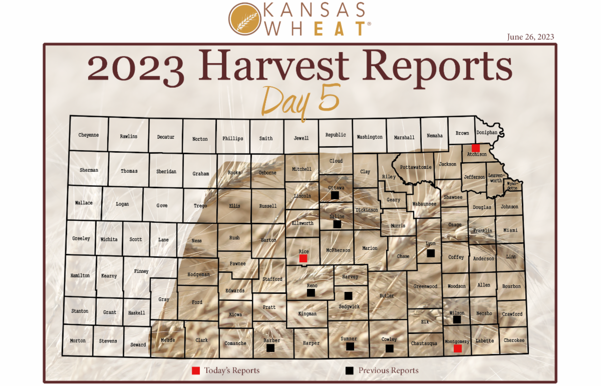 This is day 5 of the Kansas Wheat Harvest Reports, brought to you by the Kansas Wheat Commission, Kansas Association of Wheat Growers, Kansas Grain and Feed Association and the Kansas Cooperative Council.