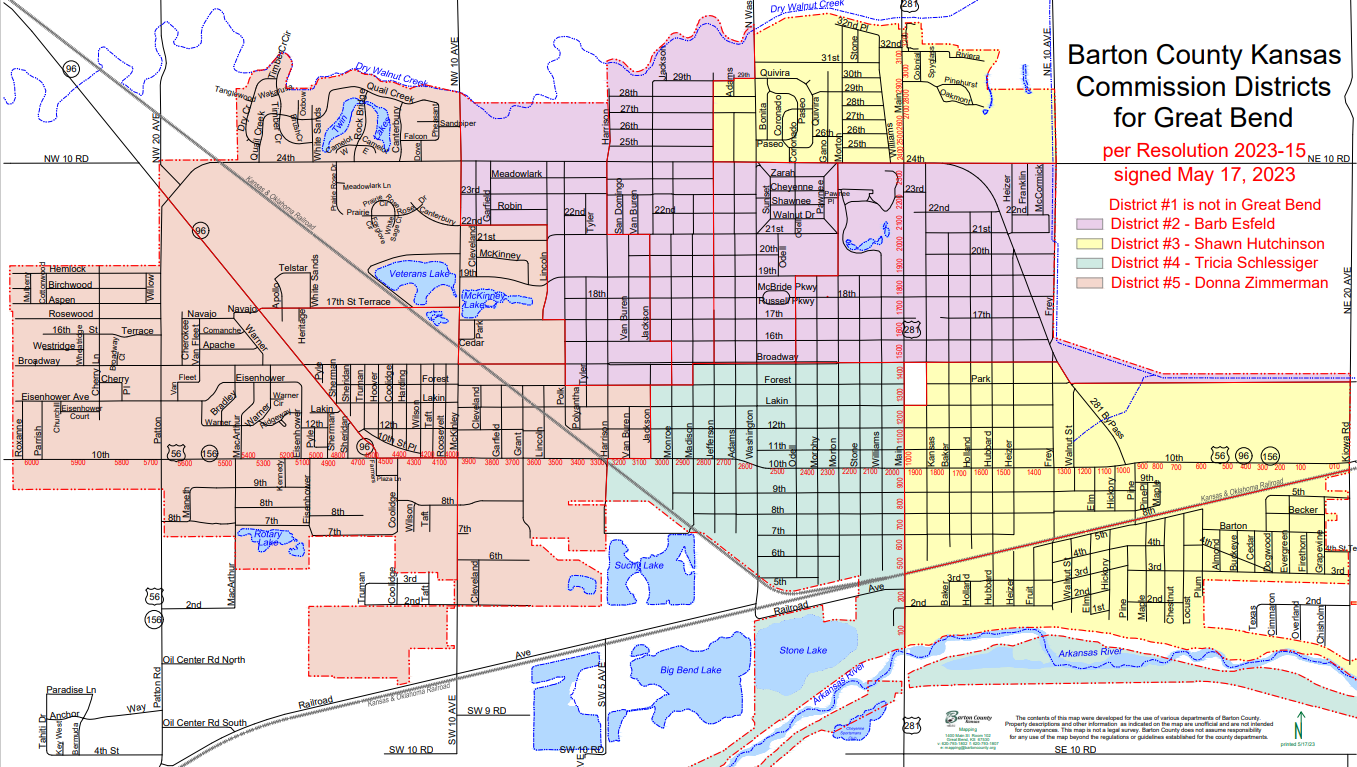 Equal representation means just that. In an effort to keep all five Barton County Commission districts similar in population, the county reviews district lines at least once every three years. Wednesday morning, County Election Officer Bev Schmeidler updated the commission on changes within the city of Great Bend that will affect commission district lines.