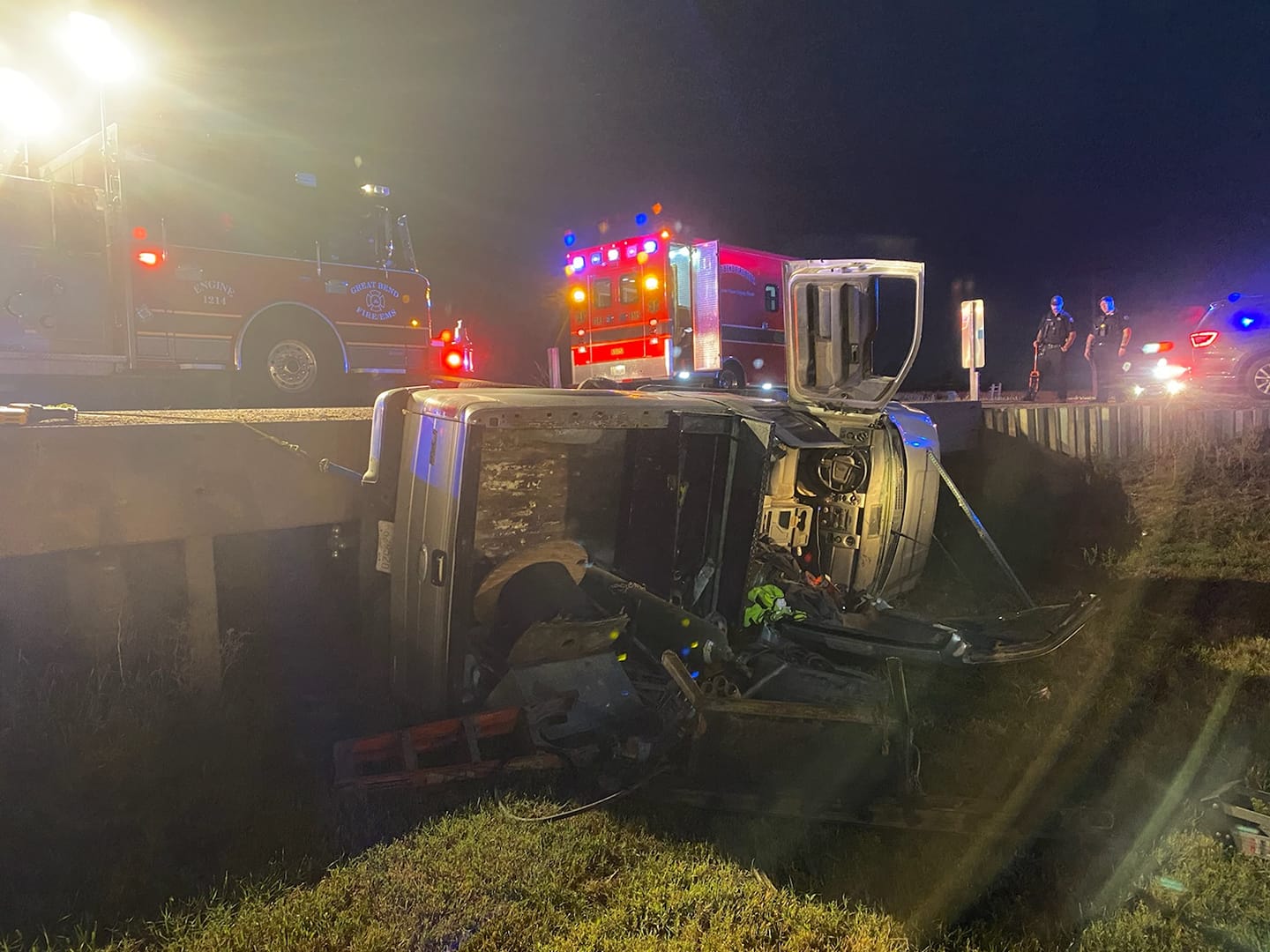 The Great Bend Fire Department personnel responded to a single vehicle accident Thursday, Sept. 8 in the 1100 block of west U.S. 56 Highway.