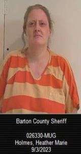 After a search of the vehicle, Heather Holmes, age 41, was arrested for possession of methamphetamine, possession of marijuana and possession of paraphernalia. The other two subjects were released from the scene. Holmes was transported to the Barton County Jail and booked in lieu of a $10,000 bond.