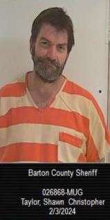 Taylor was arrested, and booked in lieu of $10,000 bond at the Barton County Jail.