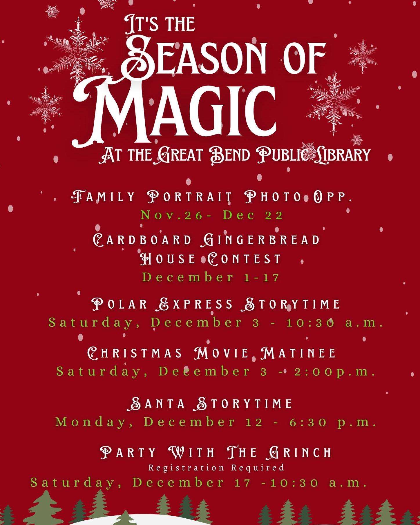This December the Great Bend Public Library has tons of family events to make sure your family's holiday season is a magical one.