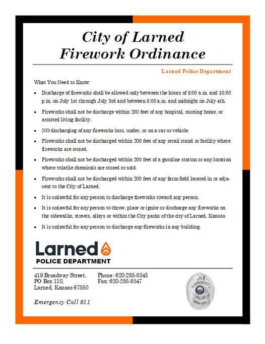 The discharge of fireworks is allowed in Larned between 8 a.m. and 10 p.m. July