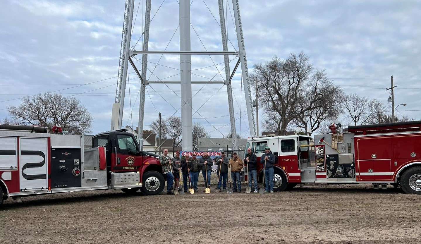 The city of Chase is hardly big enough for two fire stations. Yet the town had two properties, both needing repair, to house equipment for its volunteer fire department. Monday, city and fire department staff broke ground on a new fire station to be located in the 400 block of Main Street in Chase. Jarett Mermis, a city council member and fire captain, said it's been a community effort to raise the $190,000 for the project.
