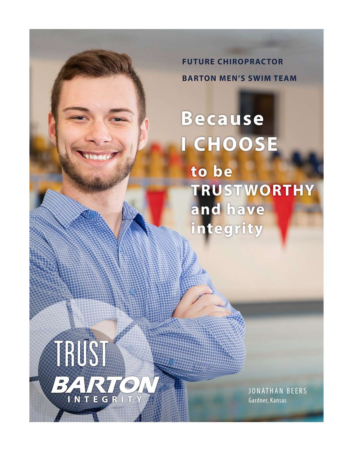 Barton student and swim team member Jonathan Beers will graduate in a couple of weeks, and he can continue his journey proudly, knowing that he left a legacy as someone who exhibited academic integrity in practice as well as being the ambassador for the value of trust.