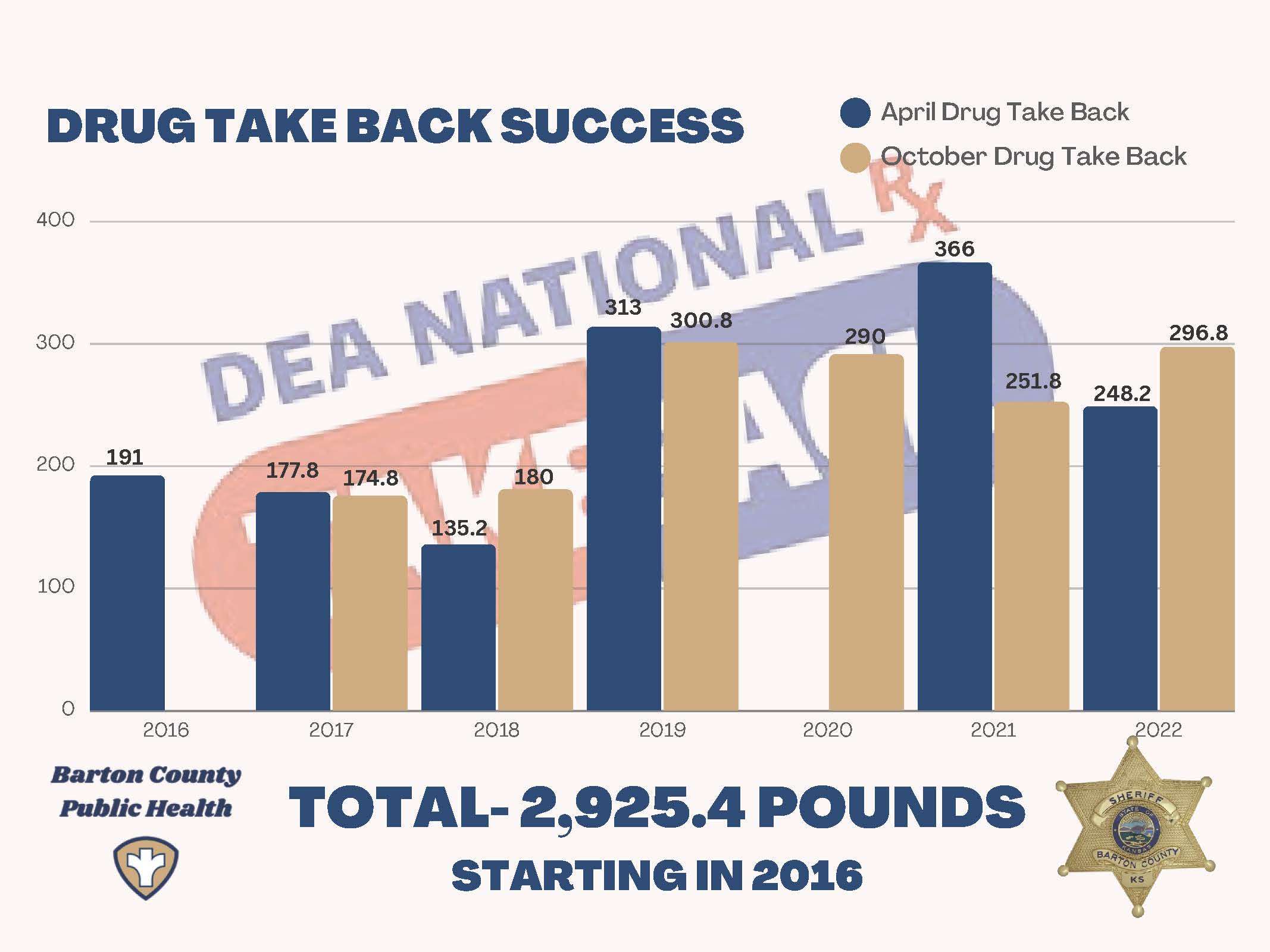 Since 2016, the Barton County drug take back day has collected and disposed of