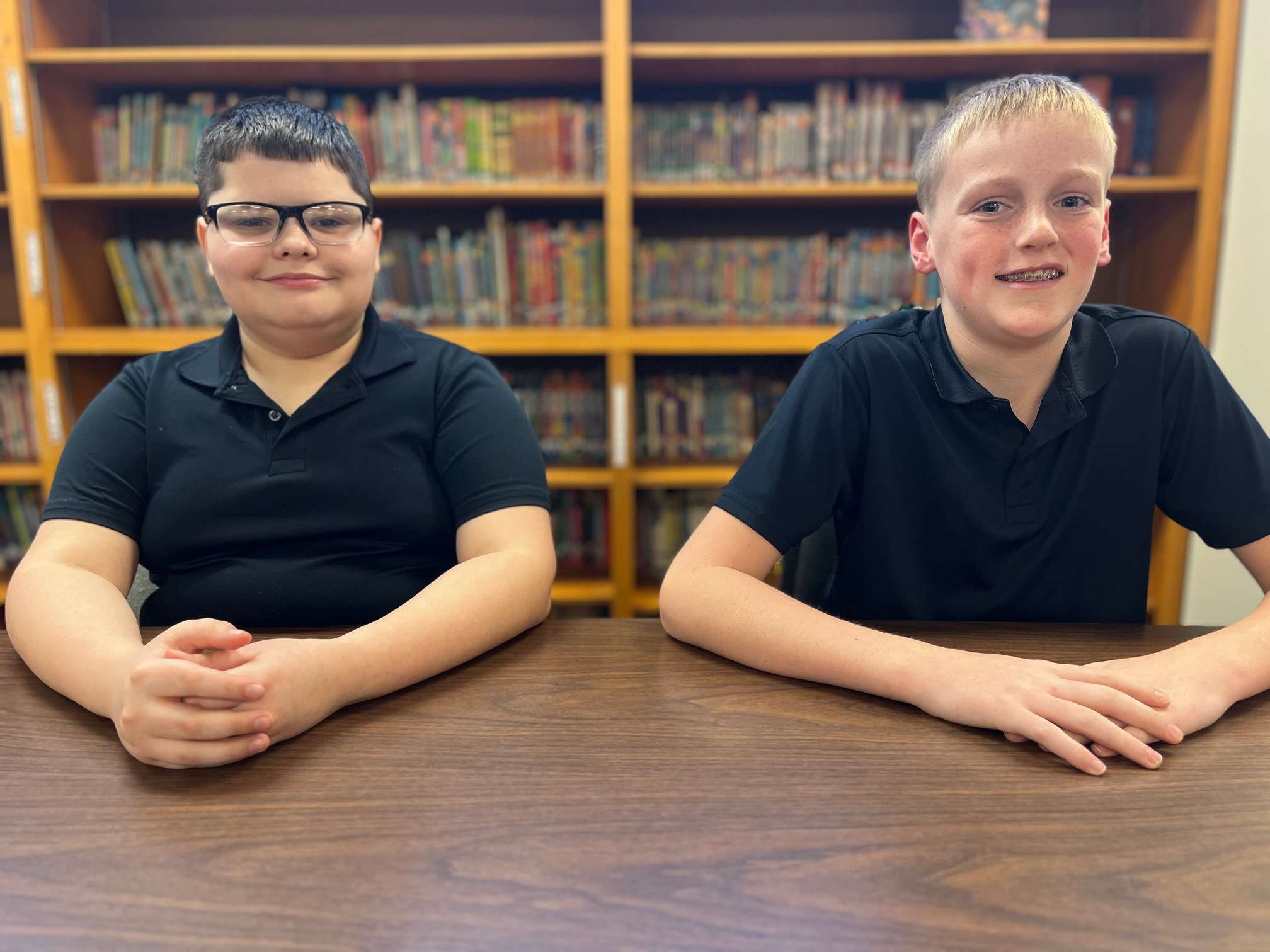 Keelon Anderson and Grant Irwin, who were the champion and runner-up in the Holy Family School (Great Bend) spelling bee held on Wednesday, Jan. 31. Both of these young men will represent Holy Family in the Barton County Spelling Bee on Feb. 10.