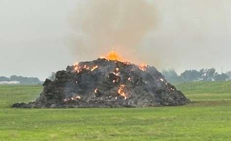 On Wednesday, June 19, at approximately 1 a.m., the Great Bend Fire Department responded to the report of a hay bale on fire near Southeast 20 Road and Southeast 30 Avenue in rural Barton County. Crews arrived to find a large stack of hay fully involved in fire. Crews quickly determined that the approximately 250 bales of hay were a total loss.