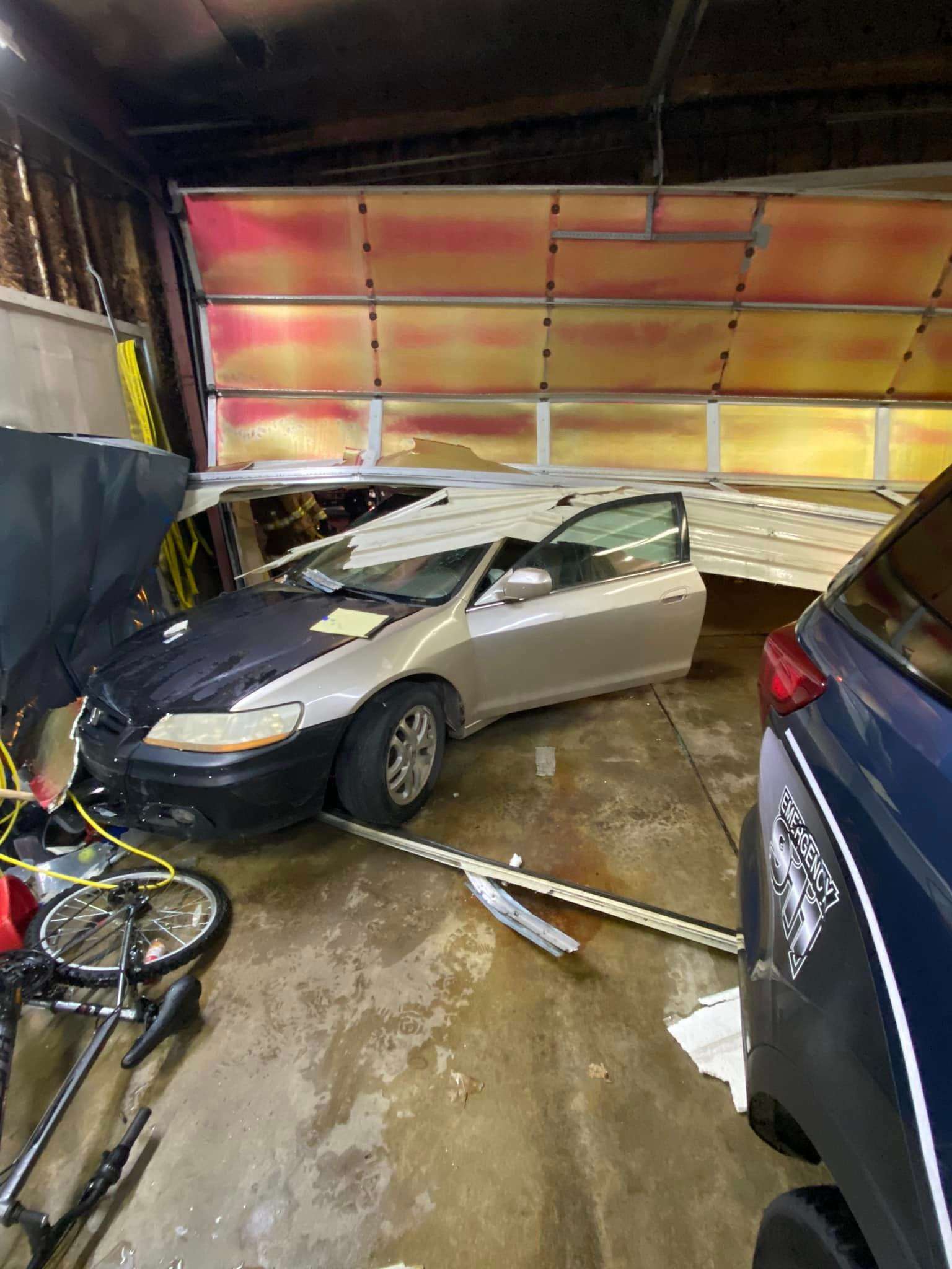 "Upon arrival, officers discovered a 2001 Honda Accord embedded into the southeast corner of the building," said Ellinwood Police Chief Chance Bailey. "Preliminary investigation indicates the vehicle was traveling eastbound on Santa Fe Boulevard at a high rate of speed when the vehicle crossed both westbound lanes of traffic and crashed into the building."