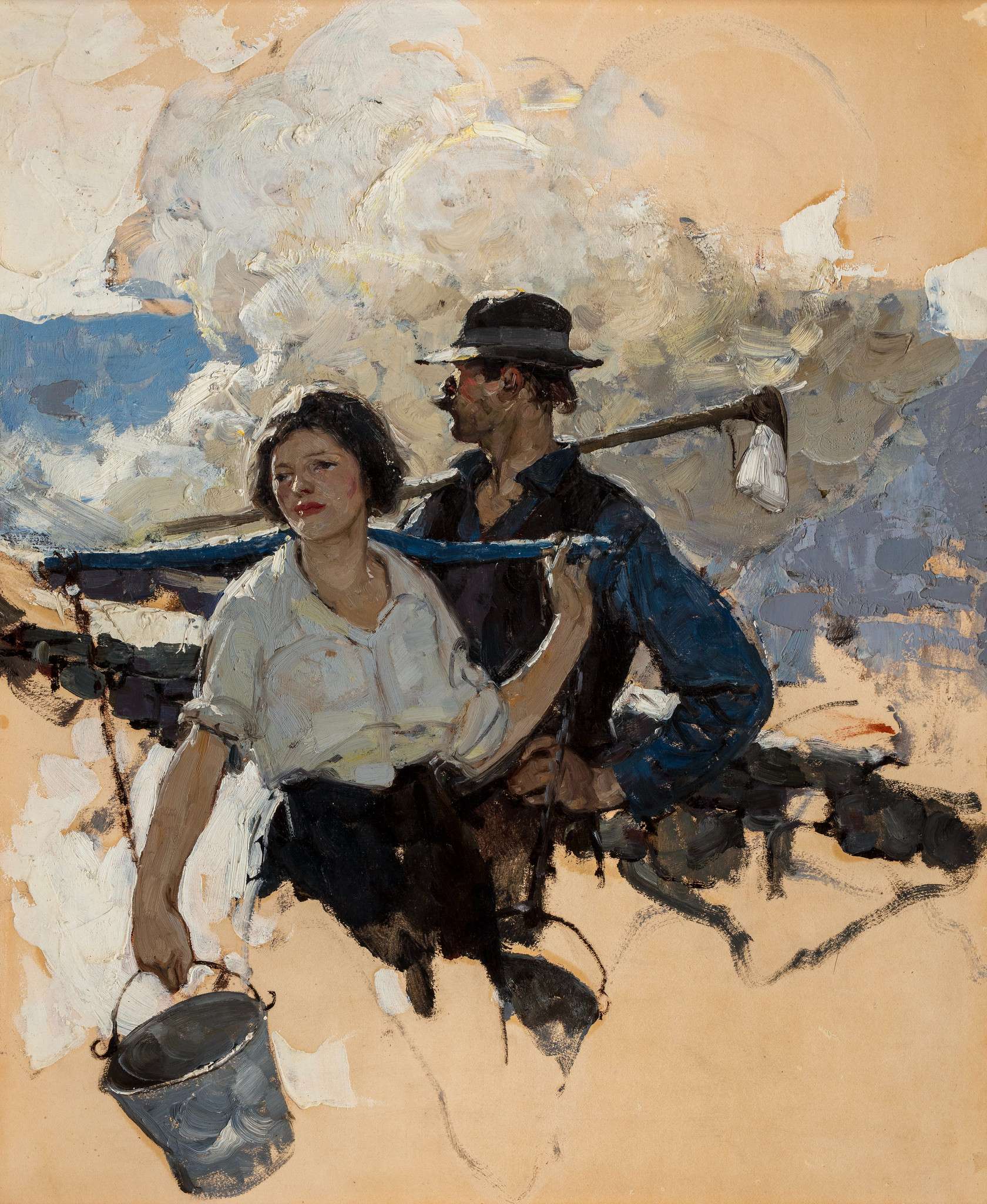 According to the Great Plains Art Museum, the artwork of French artists like Jean-François Millet demonstrated the virtues of hard work and labor and reflected an optimistic outlook on agrarian life. American artists were then inspired by these works to create their own images reflecting democratic ideals and dreams of prosperity during the era of homesteading on the Great Plains. The hope and optimism of the homestead era began to change as the decades passed. The twentieth century saw fewer Americans farming and living in rural areas, while environmental disasters like the Dust Bowl drove even more people off the land. This twilight of the agrarian age is evident in later works in this exhibition that reflect either the hardships and struggles of rural life or a nostalgic look at a lifestyle that was quickly fading into the past.