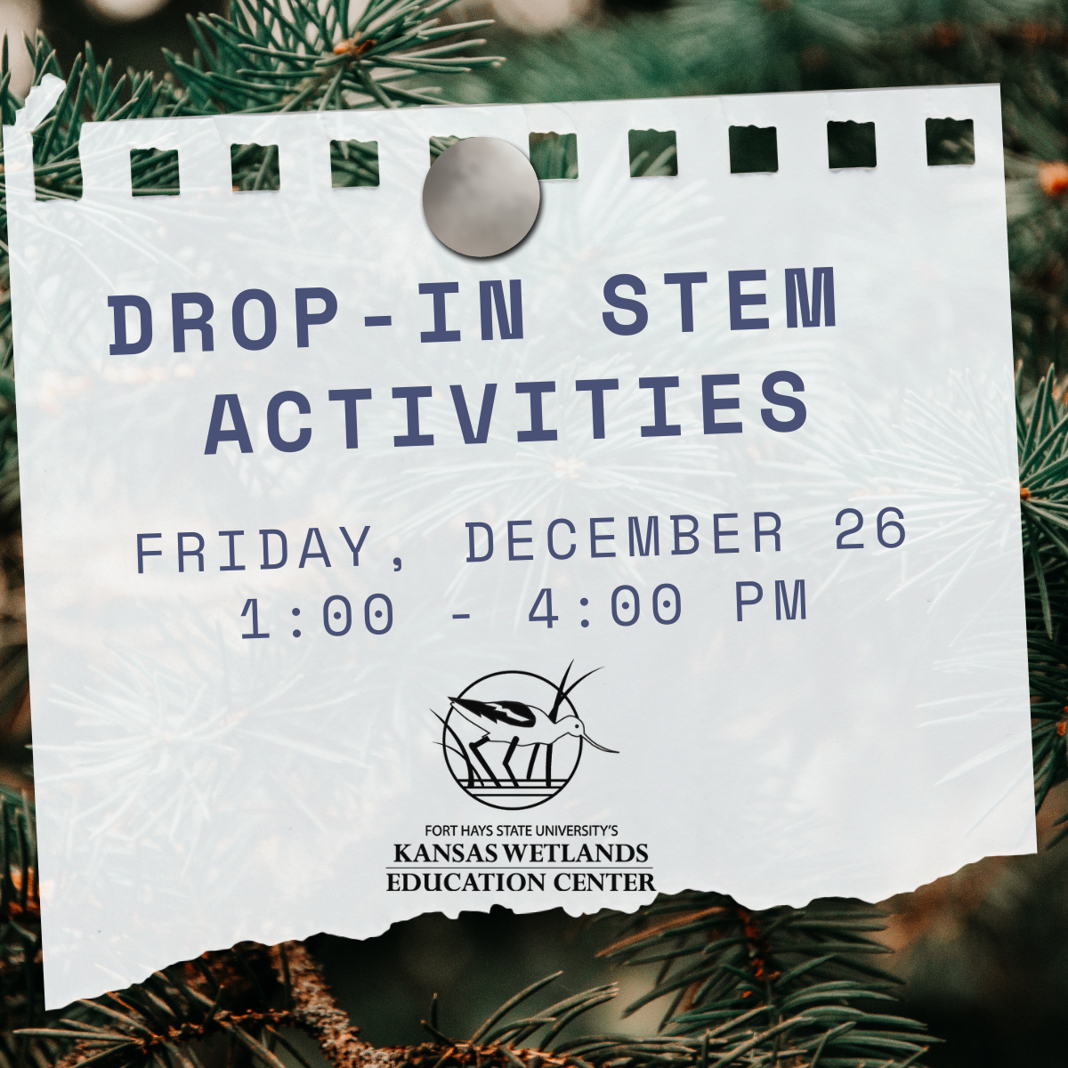 Bundle up and bring the whole family to the Kansas Wetlands Education Center from 1 until 4 p.m. Friday December 26th for “Winter Wonders Of The Wetlands” drop-In event. Enjoy an afternoon of frosty fun and hands-on discovery as you learn how animals survive and thrive in the Kansas wetlands during the coldest months of the year. Admission is free for all ages and registration is not required. To find out more, call 877-243-926.. The Kansas Wetlands Education Center is on Highway 156 between Great Bend and Claflin.
