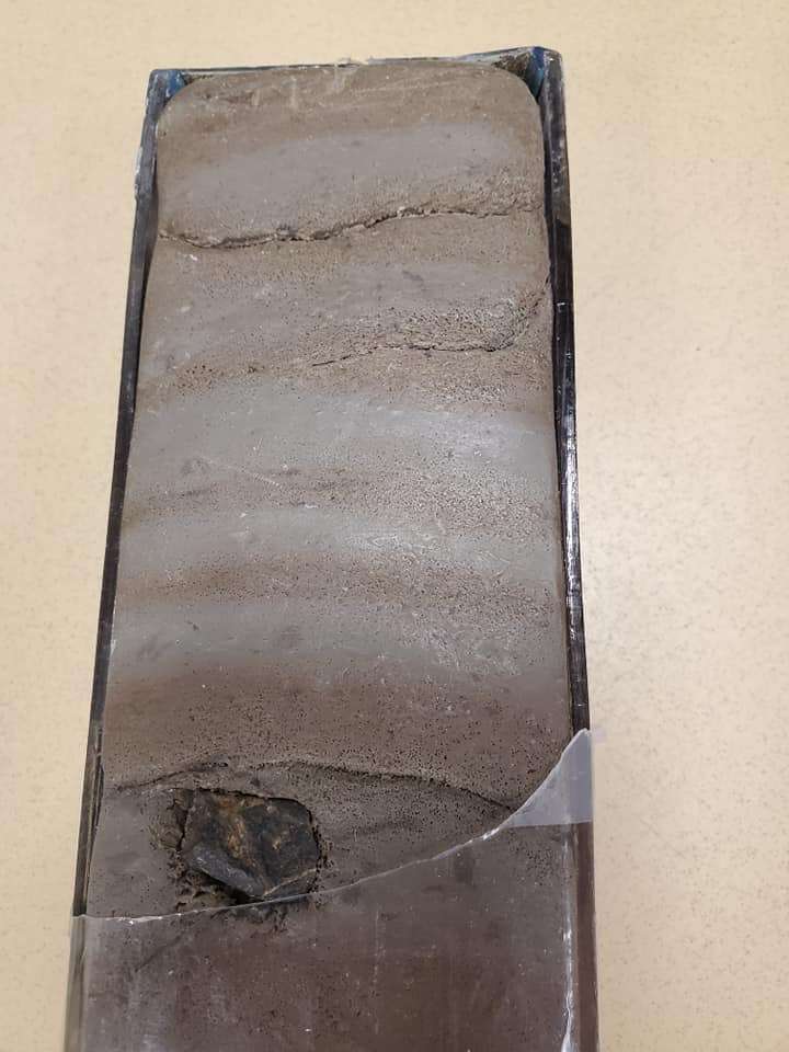 This core came from the depths of the ocean near the Antarctic Peninsula. It shows seasonal layers composed of different diatomaceous species that were deposited during the late Holocene and provides evidence for the changing climate and glacial retreat that took place in the region after the last ice age.