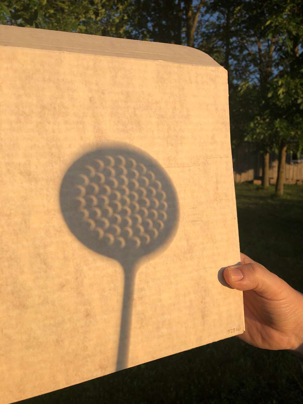 If a solar filter or welder’s glass is not available you can use a simple spaghetti or vegetable strainer or virtually anything with small round holes. Hold the kitchen tool about a foot off the ground and look at the projection of numerous semi-circles as the moon moves in front of the sun. You can then take a picture of the projection safely as you are not looking directly at the bright solar disk. A pinhole camera made from a cereal box is a great project with children. Plans can be found online.