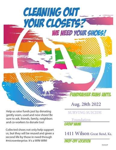 A shoe drive fundraiser is ongoing in Great Bend until Aug. 29 to raise funds for community awareness against suicide.