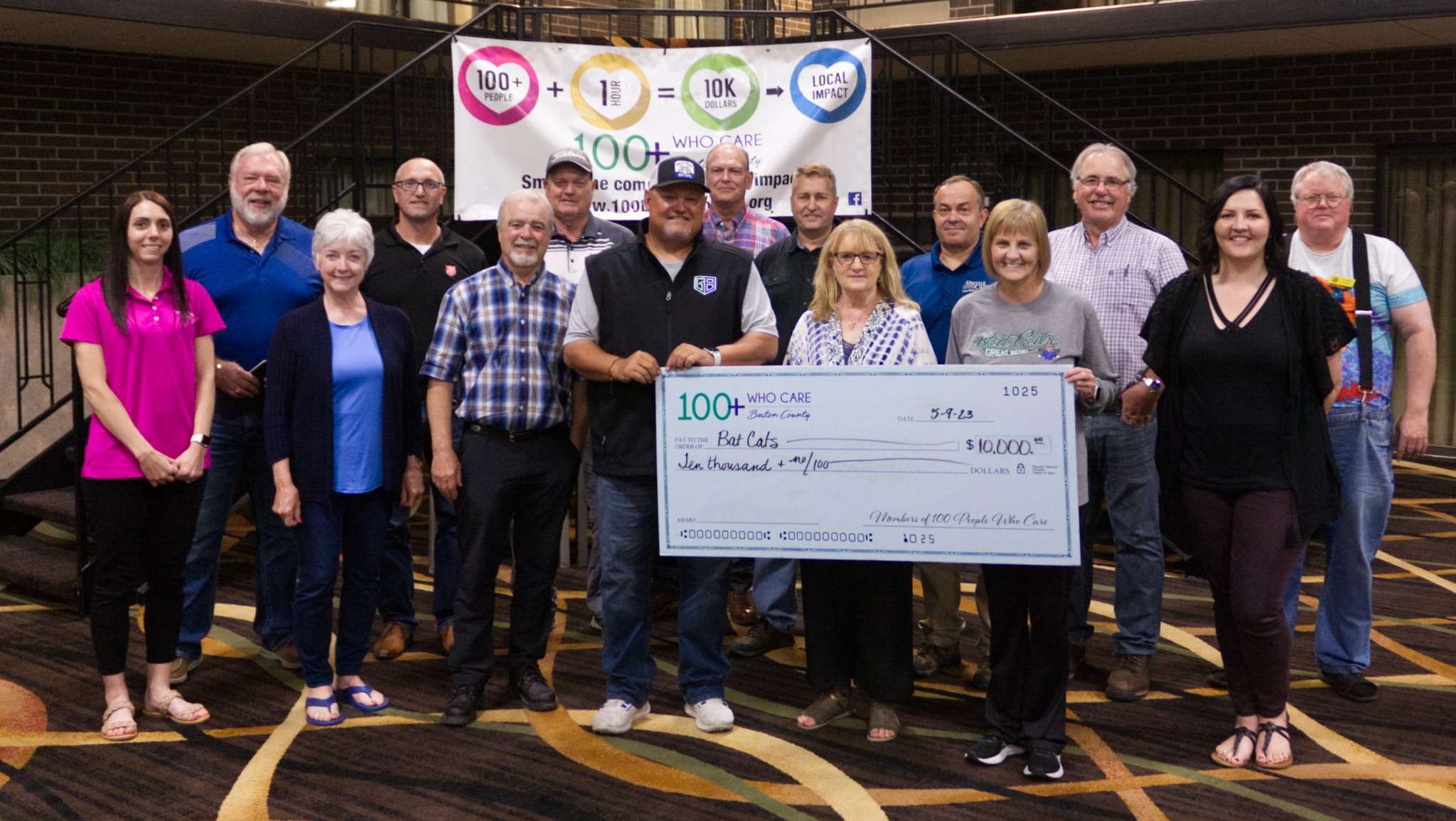 The Great Bend Bat Cat baseball season is scheduled to begin June 2, but the baseball team is already a big winner. The group 100+ People Who Care Barton County hands out at least $10,000 to a non-profit each quarter. At its May meeting, the group selected the Bat Cats as this quarter's recipient. Roger Ward, general manager of the team, said it was an honor to be recognized.