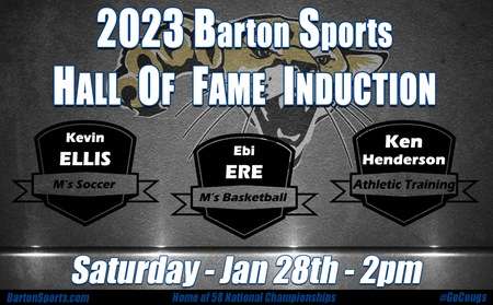 Ellis and Ere both went on to professional athletic careers after leading their respective Barton teams to national tournament appearances, Ellis was a two-time NJCAA All-America award winner as a member of the Cougar soccer team with Ere also a NJCAA All-America honoree on the basketball team. The pair will be joined by Henderson in having recently retired following a 41-year Barton career as the Head Athletic Trainer.