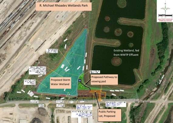 The new wetlands project will be fed by stormwater runoff rather than effluent. Its public access will include a walking trail with elevated boardwalks, interpretative signage, and some higher berms so visitors can view the wildlife in the existing City wetlands. It will also include additional parking that will accommodate school buses for field trips.