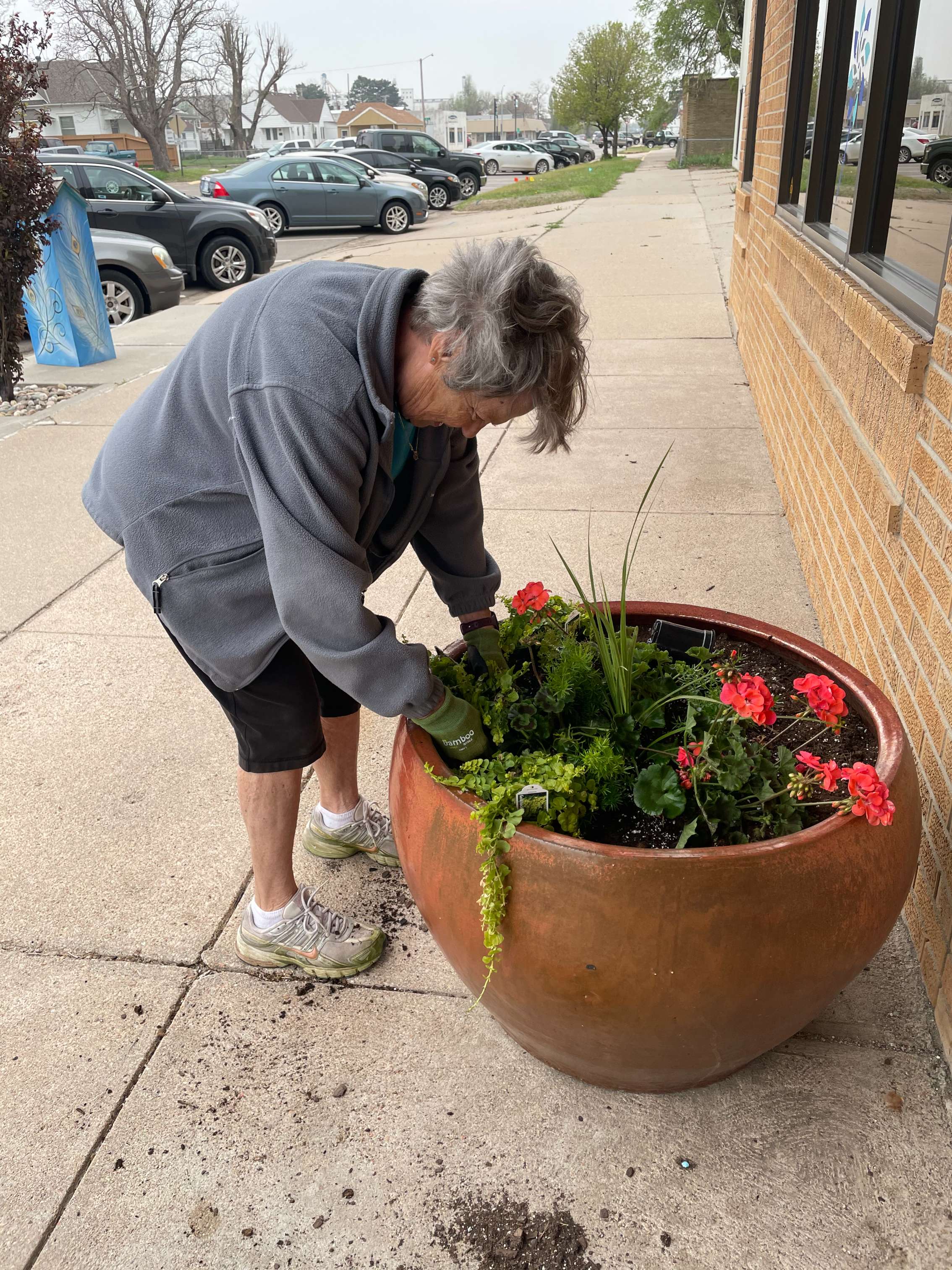 As part of a longstanding tradition, the Great Bend Beautification Committee, gathered this past May Day to replant and decorate the 13 planters lining Great Bend’s Main Street. The Main Street flowerpots are just one of several projects within Great Bend touched by the Beautification Committee, a program of the Great Bend Chamber of Commerce since 1996.