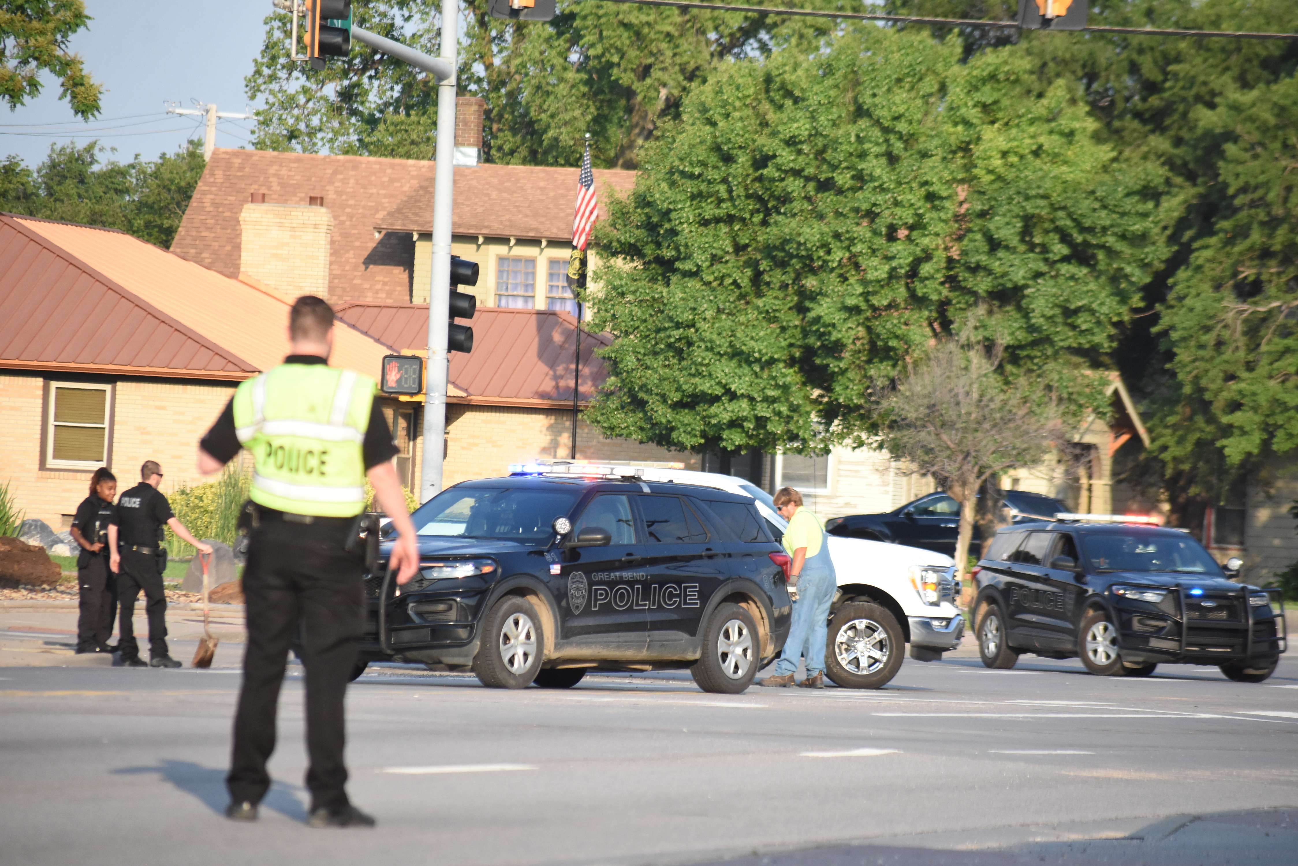 Traffic was reduced to two lanes at 10th and Frey Street in Great Bend early Monday morning as police officers worked an accident involving an overturned pick-up truck. No further details are available at this time, and the traffic reduction appeared to be temporary as of 7:40 a.m.
