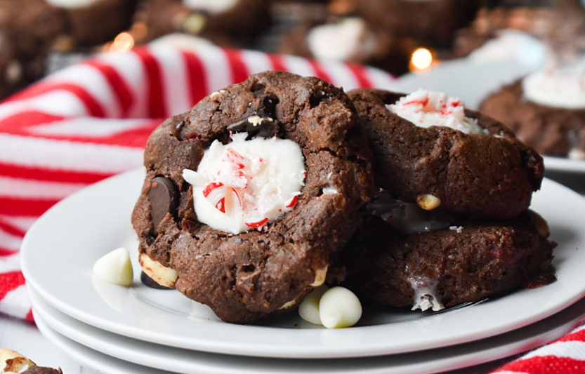 - Stir in the cocoa and flour; the dough will be sticky. Mix in the chocolate chips and crushed peppermint candy.