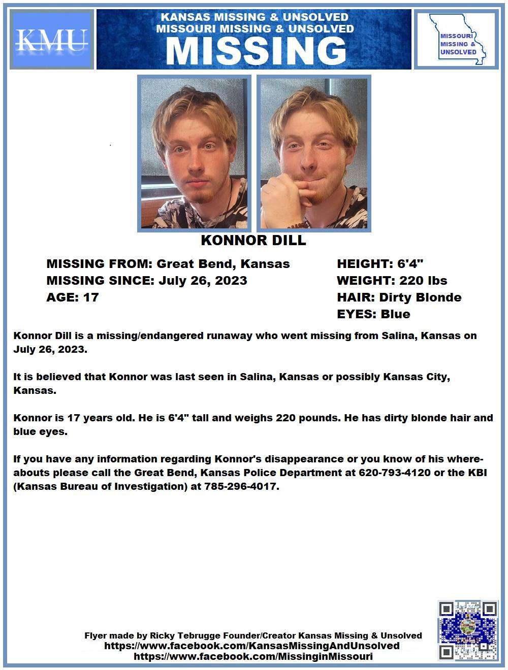 Missing/endangered runaway teenager from Great Bend