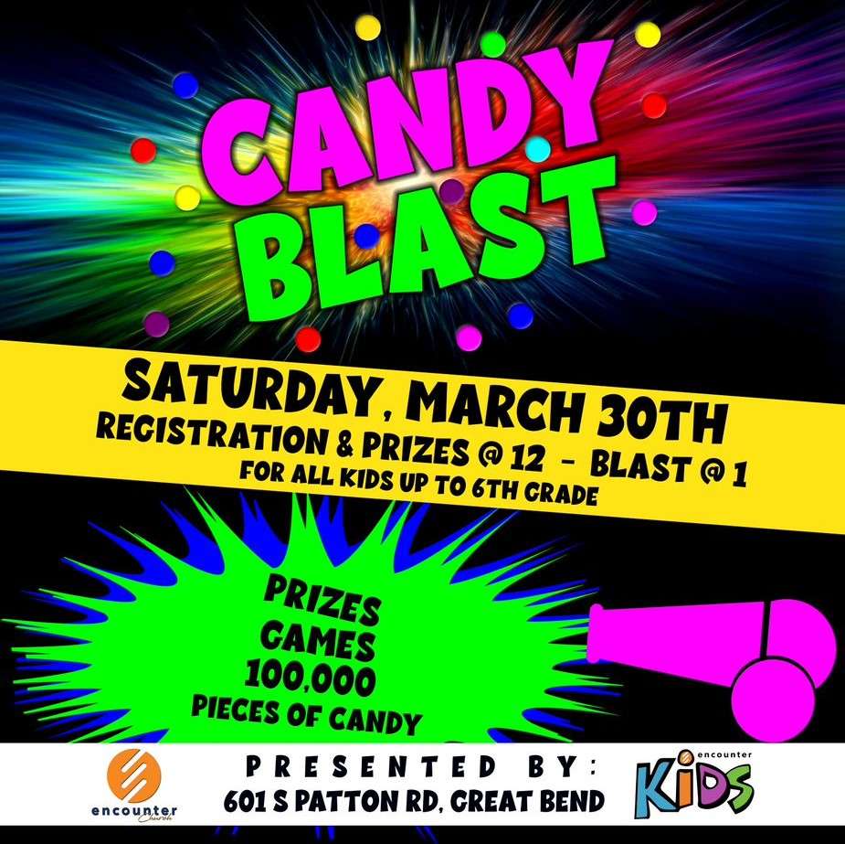 Encounter Church, located at 601 Patton Road in Great Bend, would like to invite the Great Bend area to attend their annual Candy Blast happening on Saturday, March 30. The fun starts indoors at 12 p.m. with tons of games, music, and giveaways for kids of all ages. Any children who are registered by their parents will be eligible to win some of the great prizes we will give away throughout the indoor hour! Then at 1 p.m., the fun moves outdoors to the west end of the property, where kids will take turns lining up in age groups to watch thousands of pieces of candy launched from huge cannons!