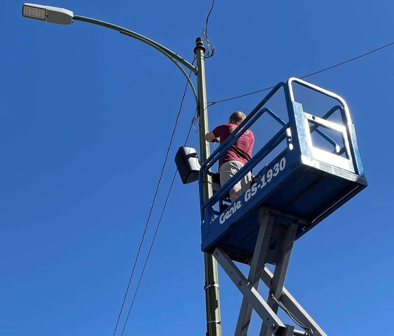 The music in downtown Larned sounded so good Tuesday afternoon that even a little rain did not stop business owners from stepping outside to give the Larned Area Chamber of Commerce a thumbs up. Eighteen new speakers have been installed on Broadway between 4th and 8th streets. Chamber Director Alex Filbert called it a huge improvement over previous speakers.