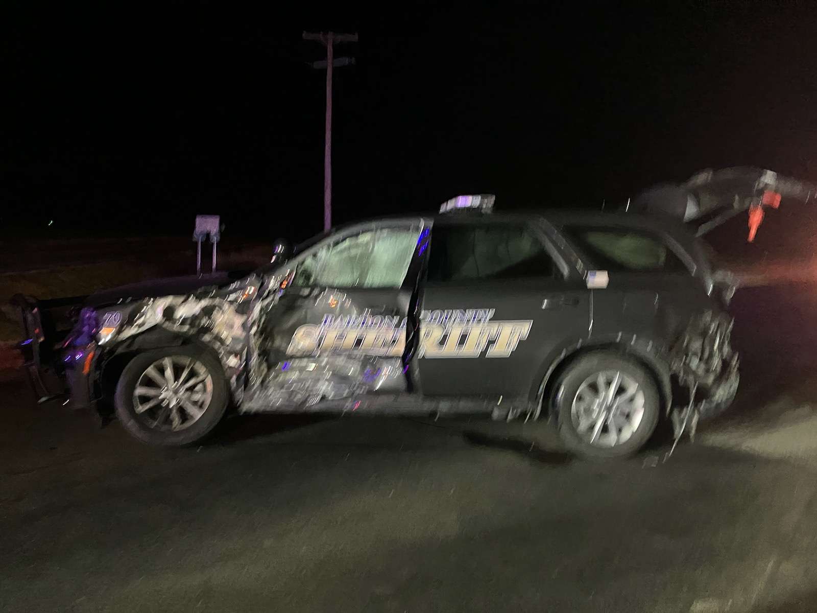 While working an injury accident at the Ellsworth / Barton County line on K-156 Highway, two Barton County Sheriff’s Office patrol cars were struck when an eastbound truck tractor and semi-trailer failed to stop at the accident scene.