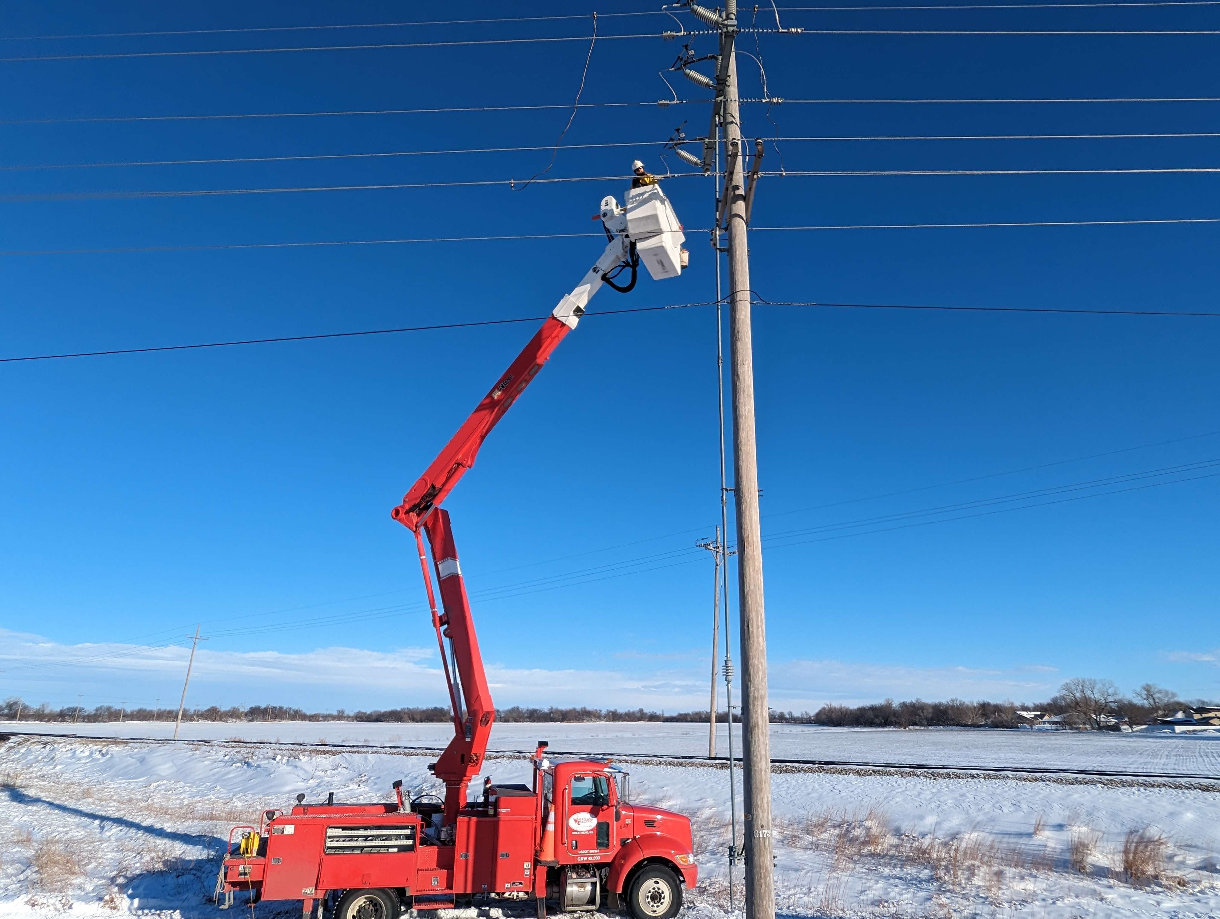 Alli Conine, Wheatland’s Director of Corporate Communications, said utility linemen worked through the blowing snow and white out conditions.