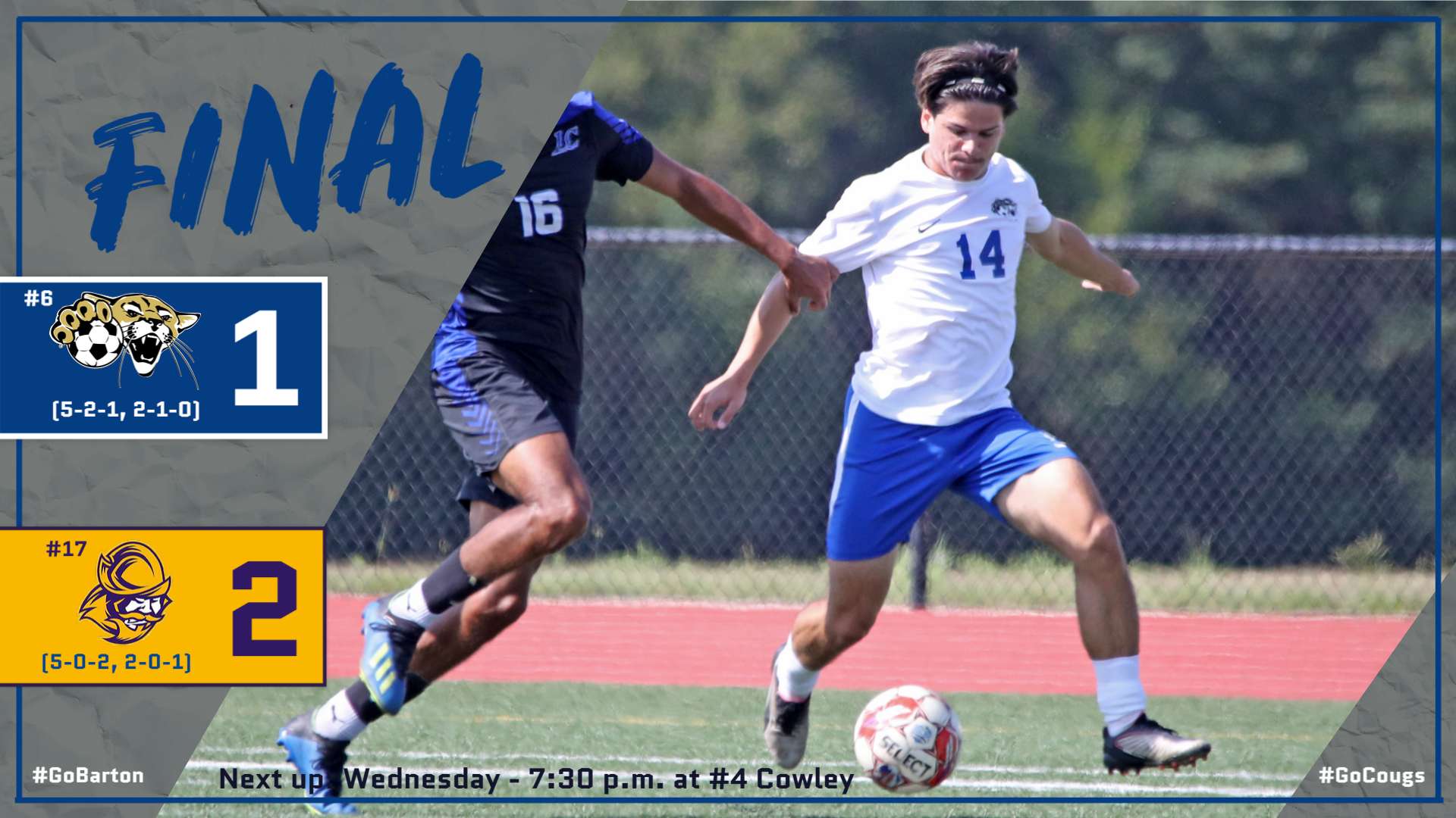 A fast start in a matchup of nationally ranked foes would not be enough for the No. 6 Barton Community College men's soccer team on the road Sunday afternoon as No. 17 Dodge City Community College responded with two unanswered goals to deal the Cougars a 2-1 setback at Dodge City's Memorial Stadium.