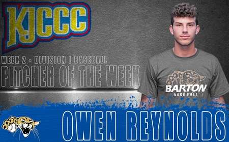 Owen Reynolds of the Barton Community College baseball team has been named the week two KJCCC Division I Pitcher of the Week.