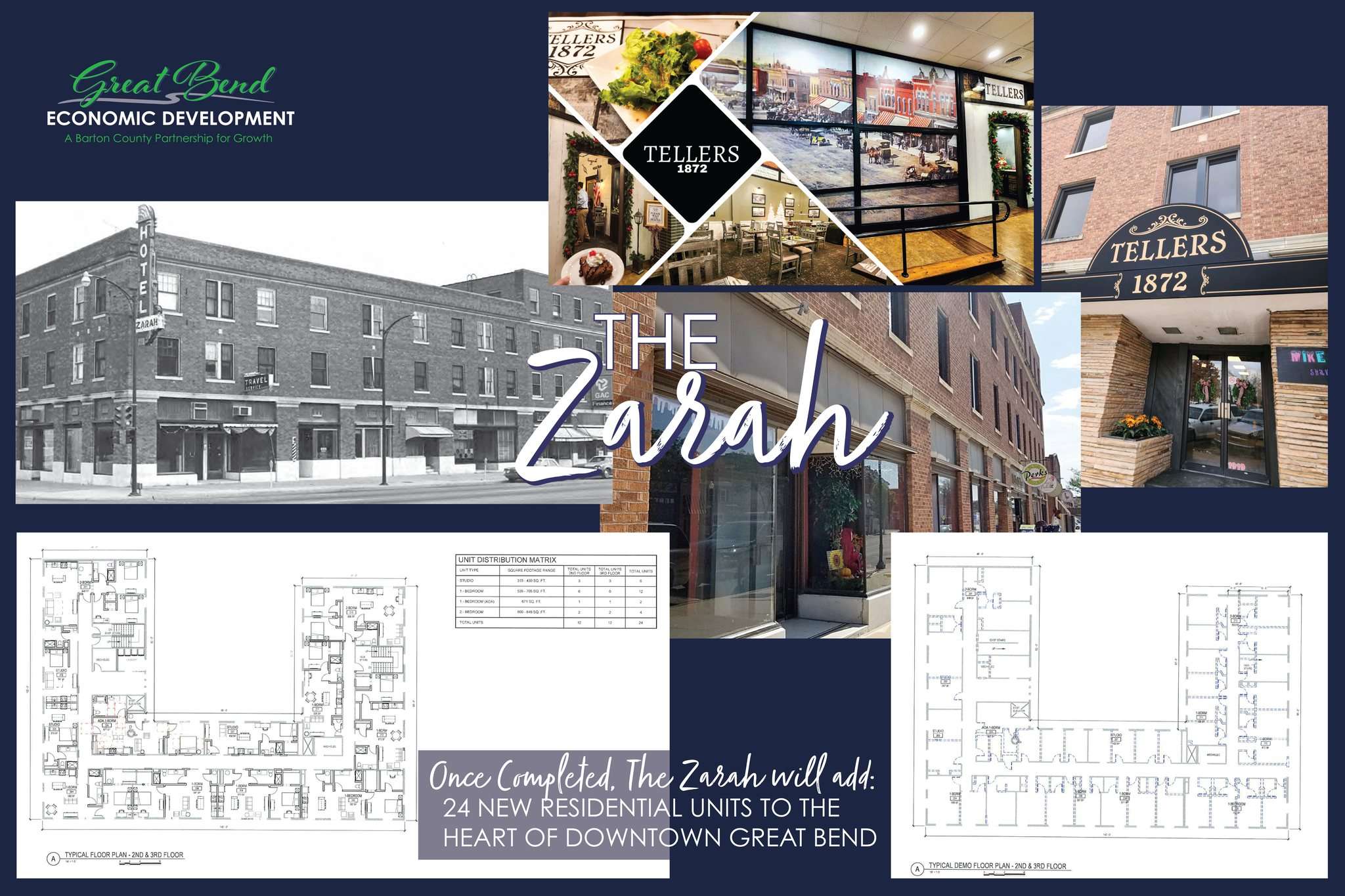 The Zarah Apartments project is an adaptive reuse and historic preservation project that will create twenty four (24) new apartment units in the historic Zarah Hotel, right on the courthouse square in downtown Great Bend.
