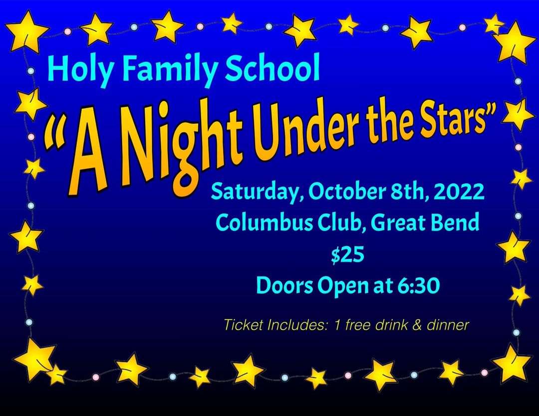 Excitement continues to build at Holy Family School as we near the date for "A Night Under the Stars" to be held at the Columbus Club on Oct. 8. Doors to the event will open at 6:30 p.m. with dinner to be served at 7 p.m.