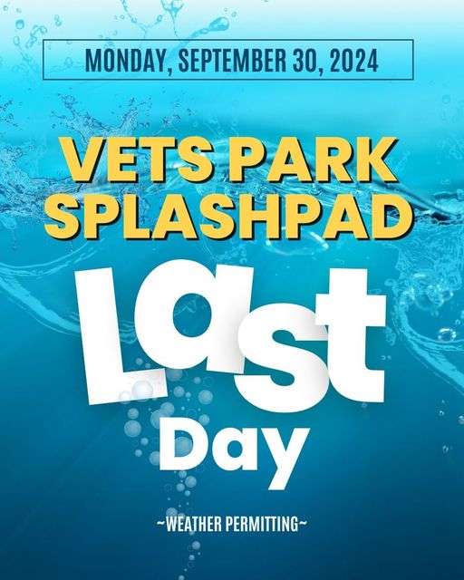 The Veterans Memorial Park Department in Great Bend would like to inform the community that the last day for the splash pad will be Sept. 30, pending weather conditions. If temperatures drop early, the city may have to close the splash pad sooner.