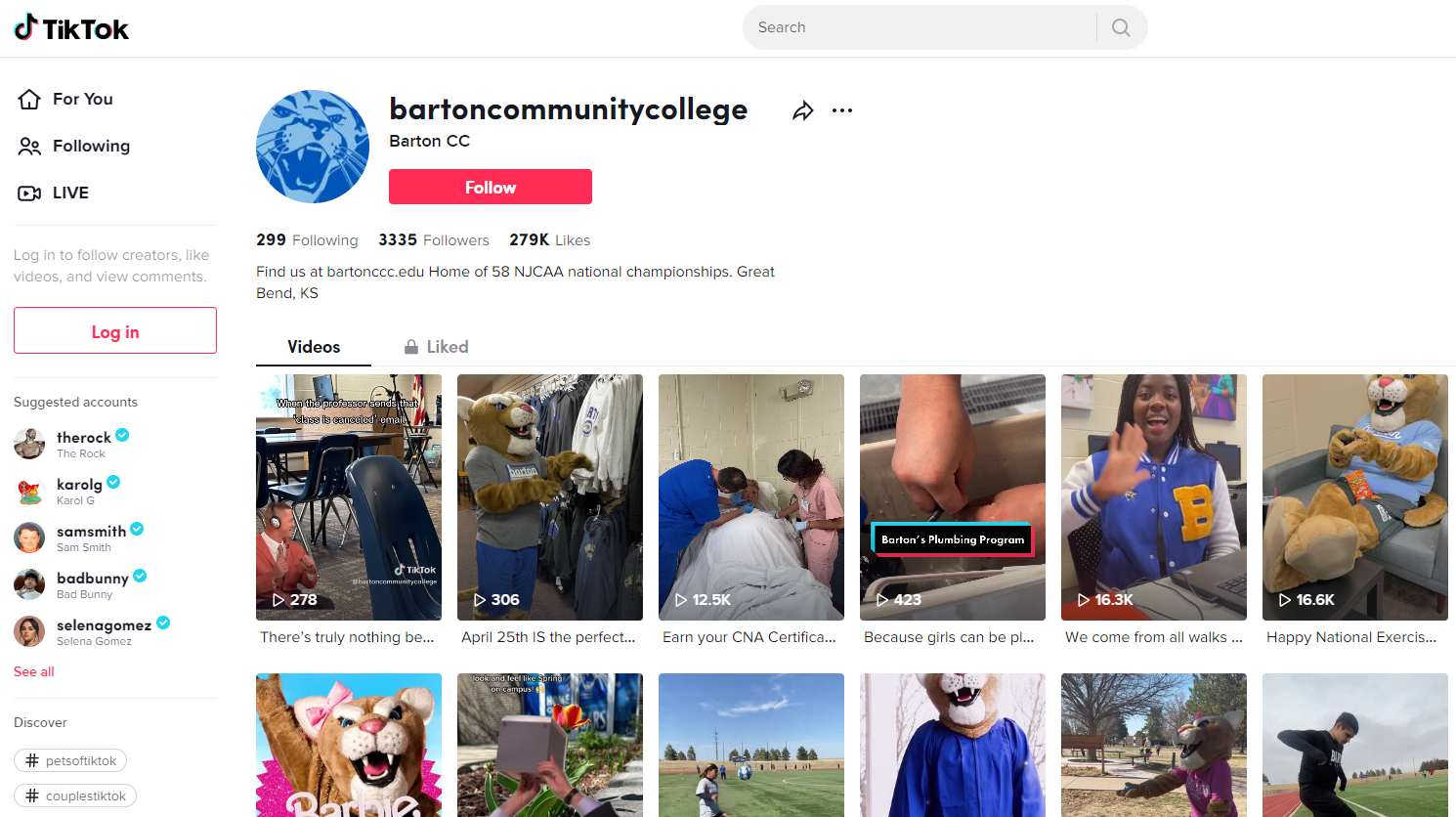 You can connect with Barton Community College on TikTok, Snapchat, Instagram, YouTube,