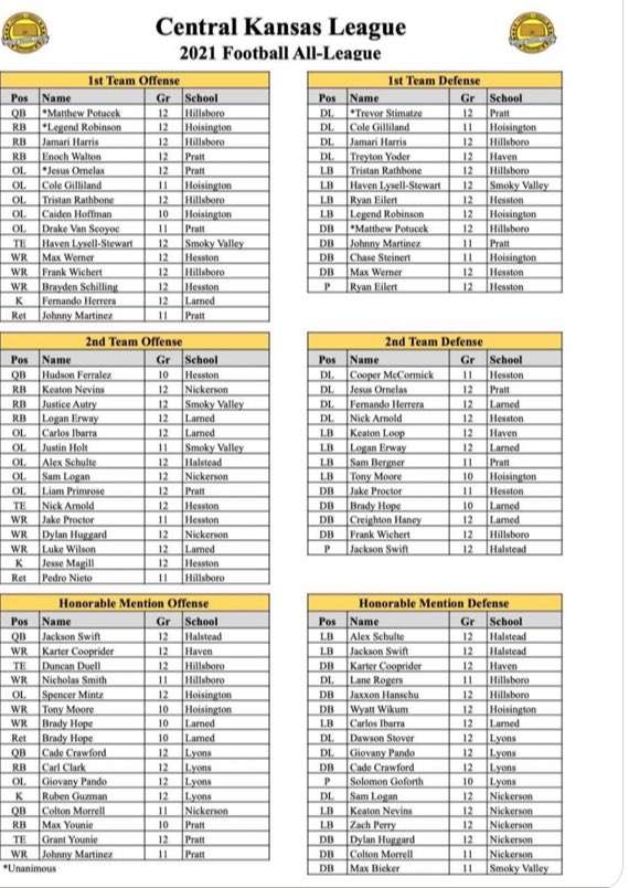 The Central Kansas League announced their 2021 Football All-League