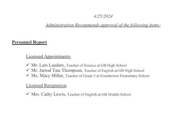 USD 428 personnel report: Lueders approved as new coach at GBHS