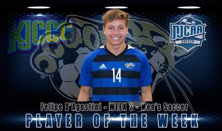 Felipe D'Agostini of the 15th ranked Barton Community College men's soccer team not only picked up his second KJCCC weekly award of the season but earned national distinction as well in the NJCAA's week three Player of the Week.