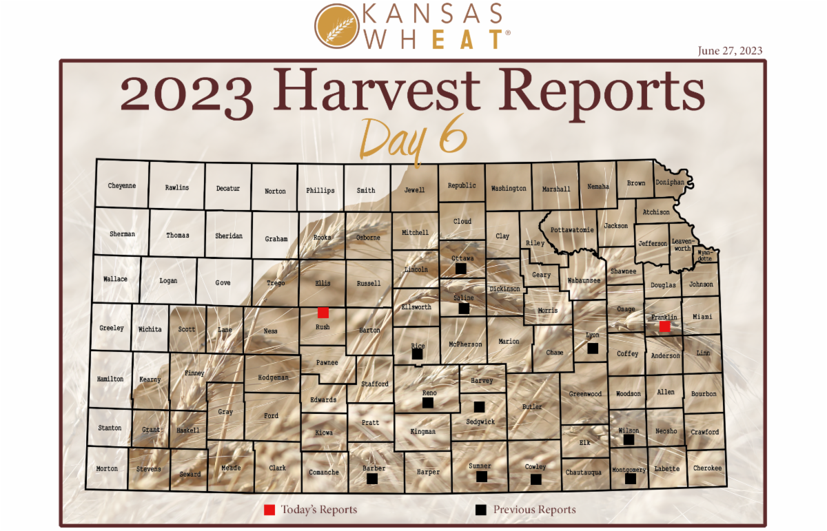 The 2023 Harvest Report is brought to you by the Kansas Wheat Commission, Kansas Association of Wheat Growers, Kansas Grain and Feed Association and the Kansas Cooperative Council. To follow along with harvest updates on Twitter, use #wheatharvest23. Tag us at @kansaswheat on Facebook, Instagram and Twitter to share your harvest story and photos.