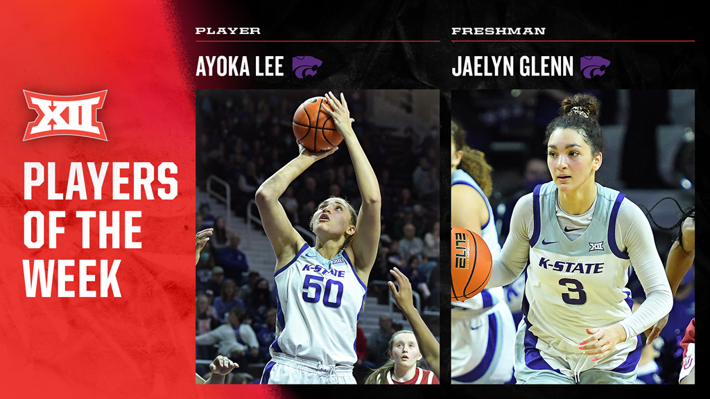 K-State’s Ayoka Lee earned her fourth Big 12 Women’s Basketball Player of the Week honor after her NCAA-record 61-point outburst against No. 14 Oklahoma. The Wildcats’ Jaelyn Glenn captured her first Big 12 Women’s Basketball Freshman of the Week honor, giving K-State its second sweep of Big 12 weekly honors this season, as voted on by a five-person media panel.