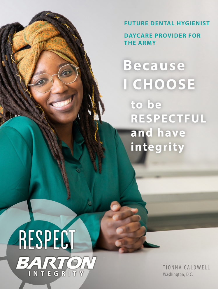 Barton at Fort Leavenworth student Tionna Caldwell knows the value of respect goes beyond her personal endeavors. She believes it is imperative to exhibit and reciprocate it not only as she finishes her education, but also as she pursues her career as a dental hygienist.