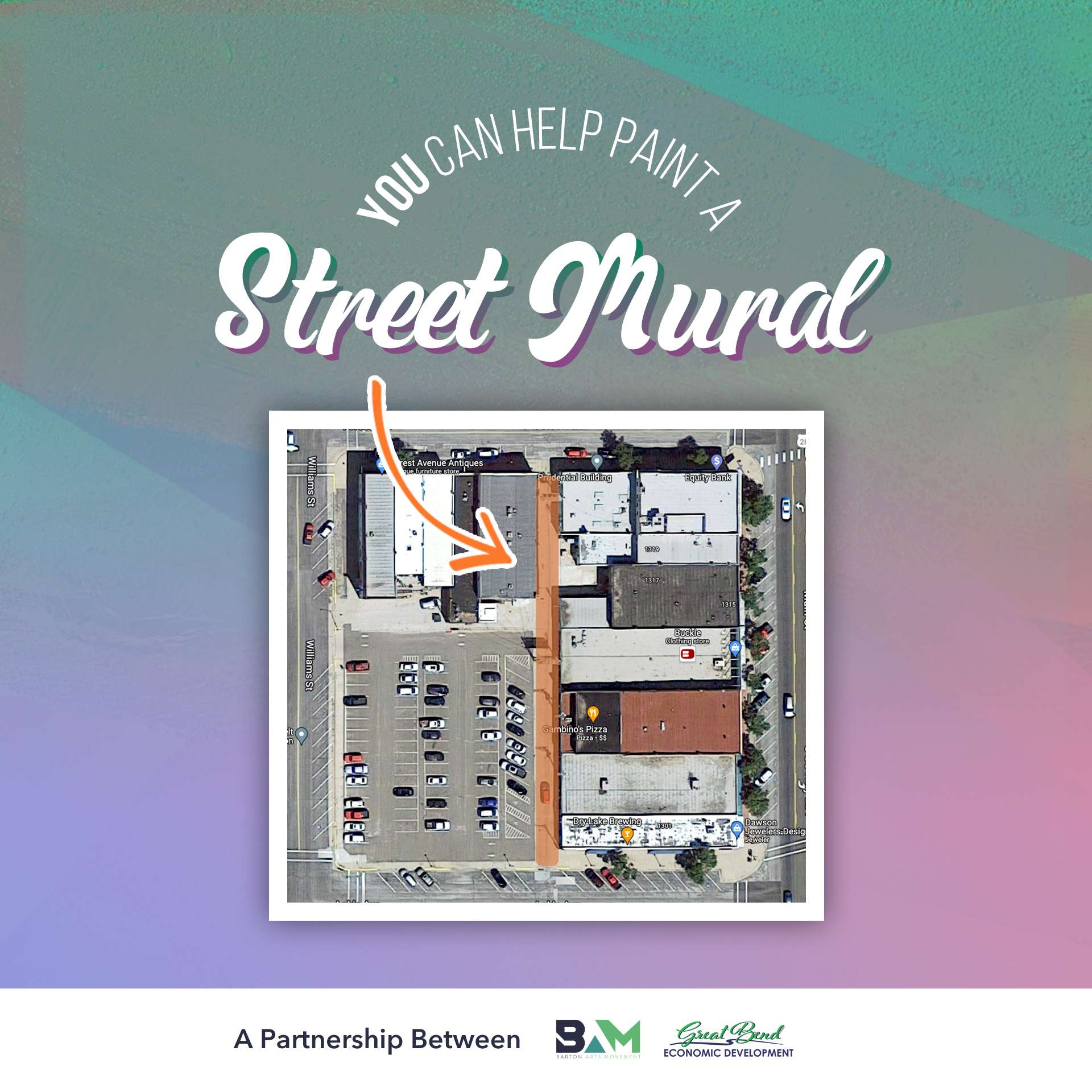 The new street mural is part of a larger scale effort to revitalize and energize the downtown Great Bend area. Great Bend Alive is a 501(c)6 nonprofit organization working to improve the downtown area and help recruit young professionals and young families back to the area.