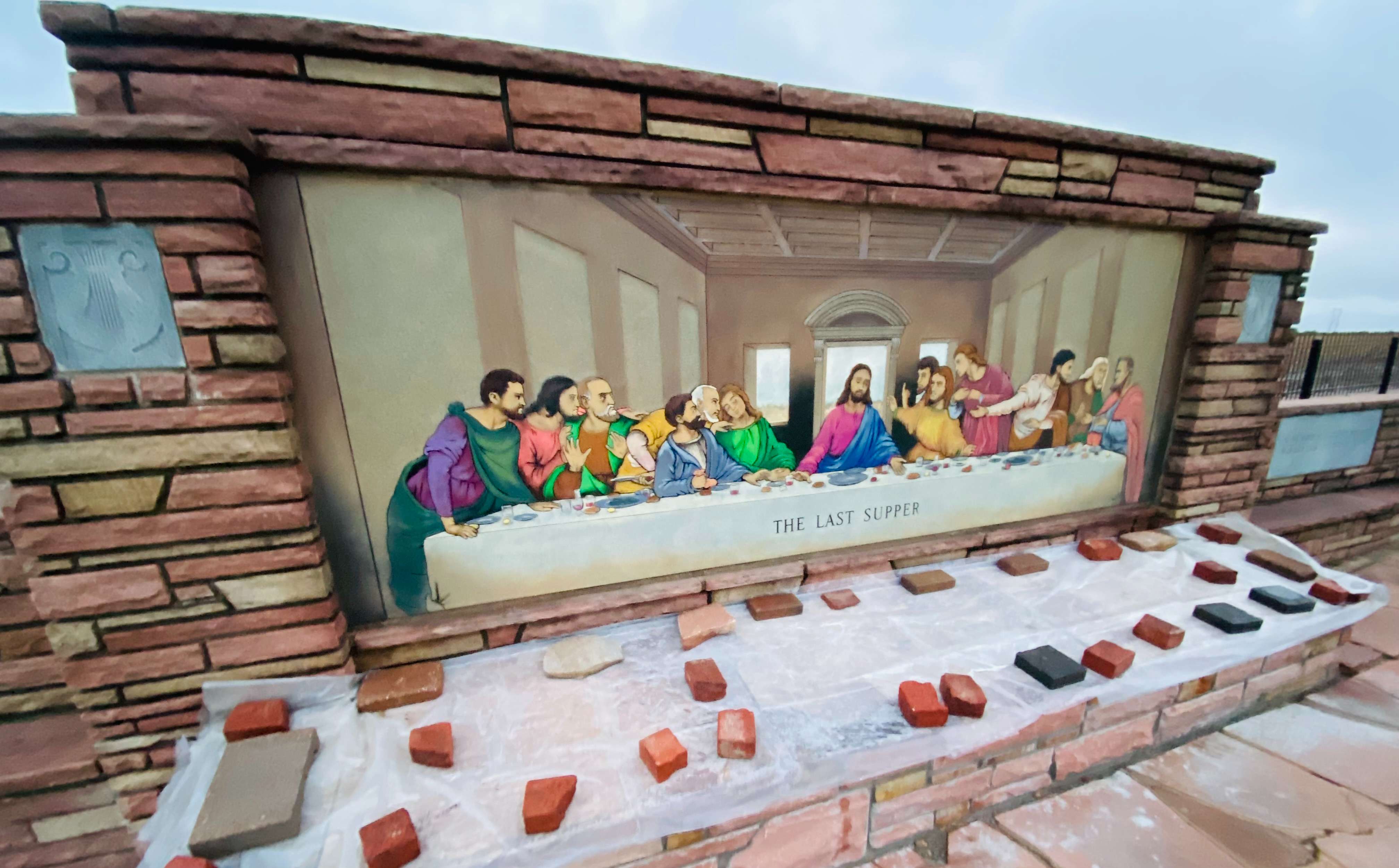 restoration of two stone murals at Hillcrest Cemetery, north of Great Bend.