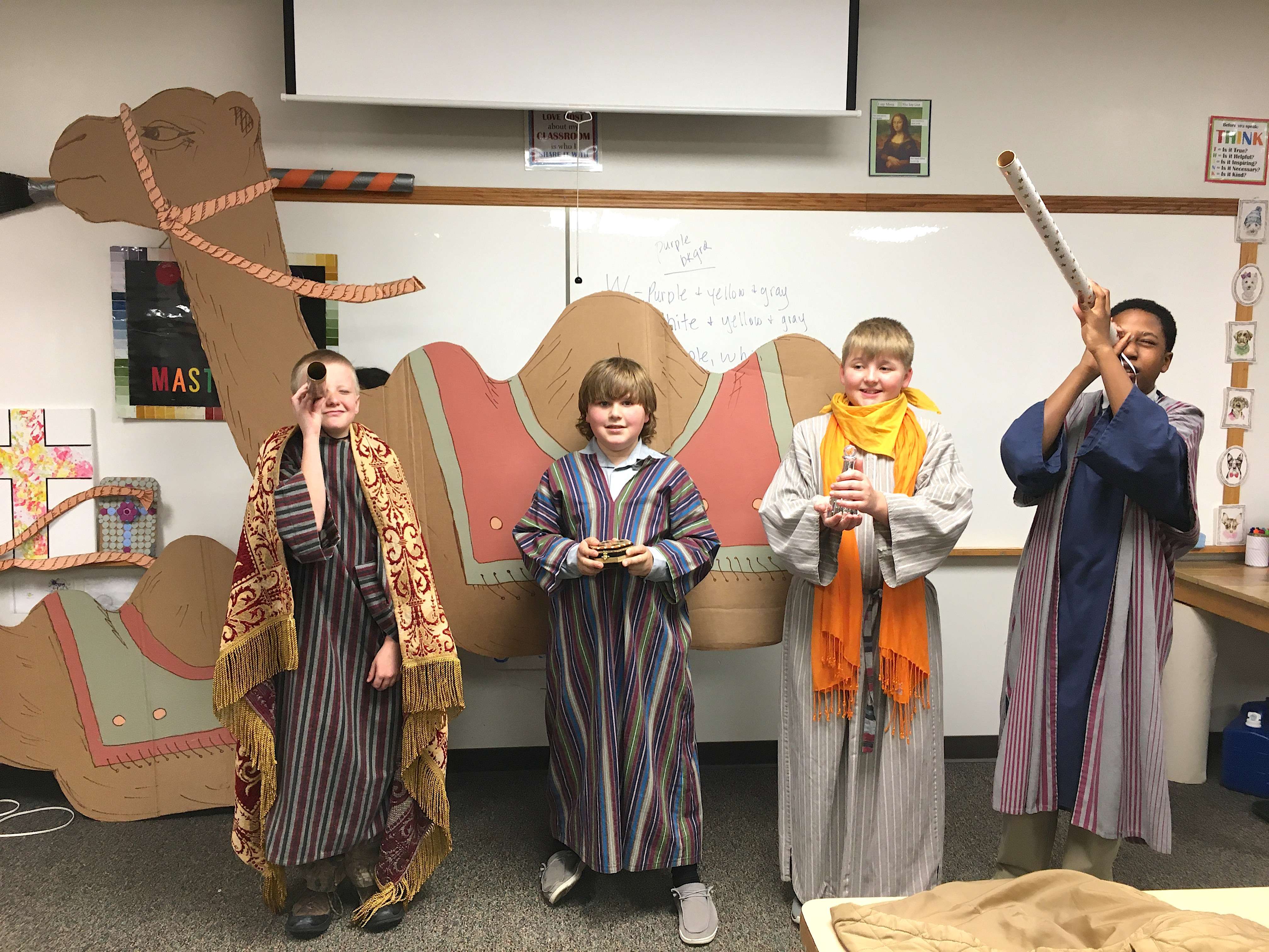 In the biblical story of the three wise men, they had a long and difficult journey to meet the baby Jesus. But during rehearsals for a holiday musical happening Dec. 15, students from Central Kansas Christian Academy have enjoyed getting to learn more about the famous Christmas story with a first-hand perspective as “wise guys”, “camel boys”, “cooks”, and other roles. The characters journey from the east, following a star in the night sky to find something unexpected.