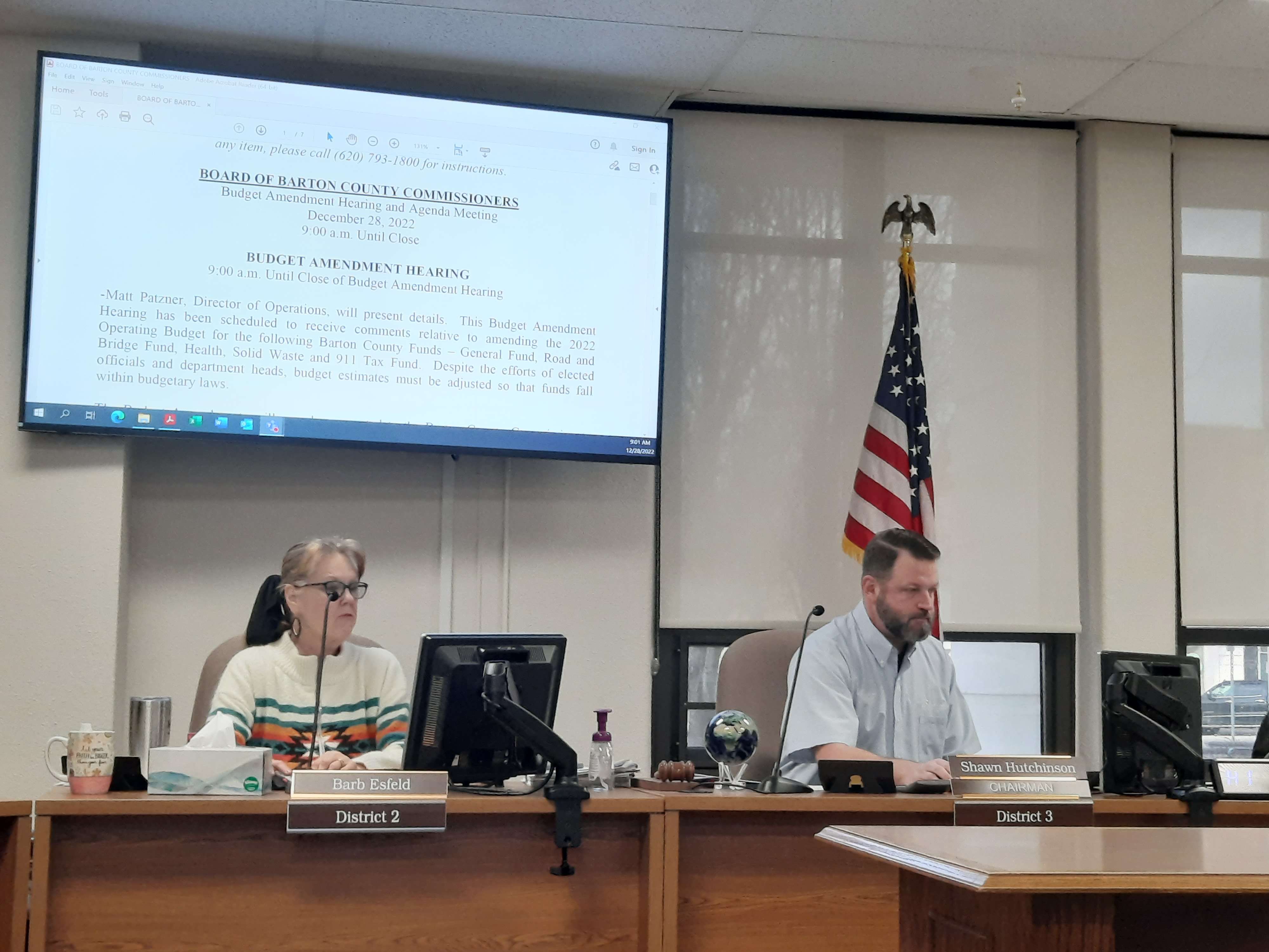 As the New Year approaches, the Barton County Commission had some cleaning up to do in its final meeting of 2022 Wednesday morning. Prior to the regular meeting, the governing body held a budget amendment hearing to welcome any comments from the public. With no comments, the commission approved amendments totaling $3,050,000 to affect five funds. County Director of Operations Matt Patzner explained why the amendments were necessary.