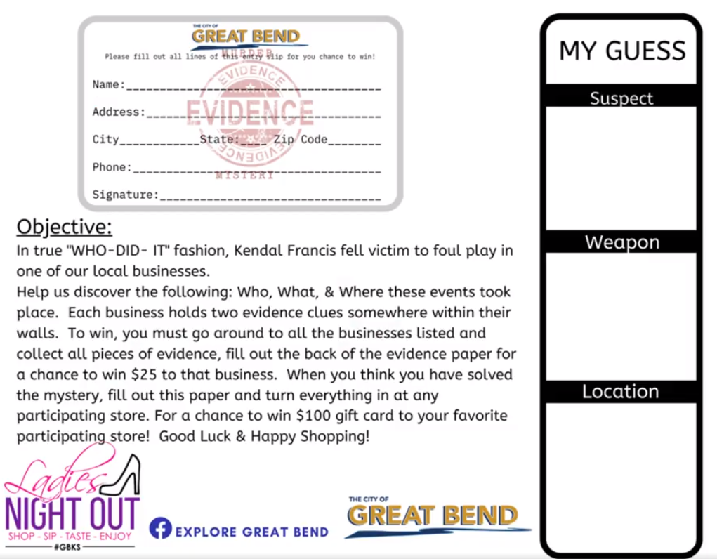The Ladies Night Out Murder Mystery Shopping event is from 4 p.m. to 8 p.m. Thursday.