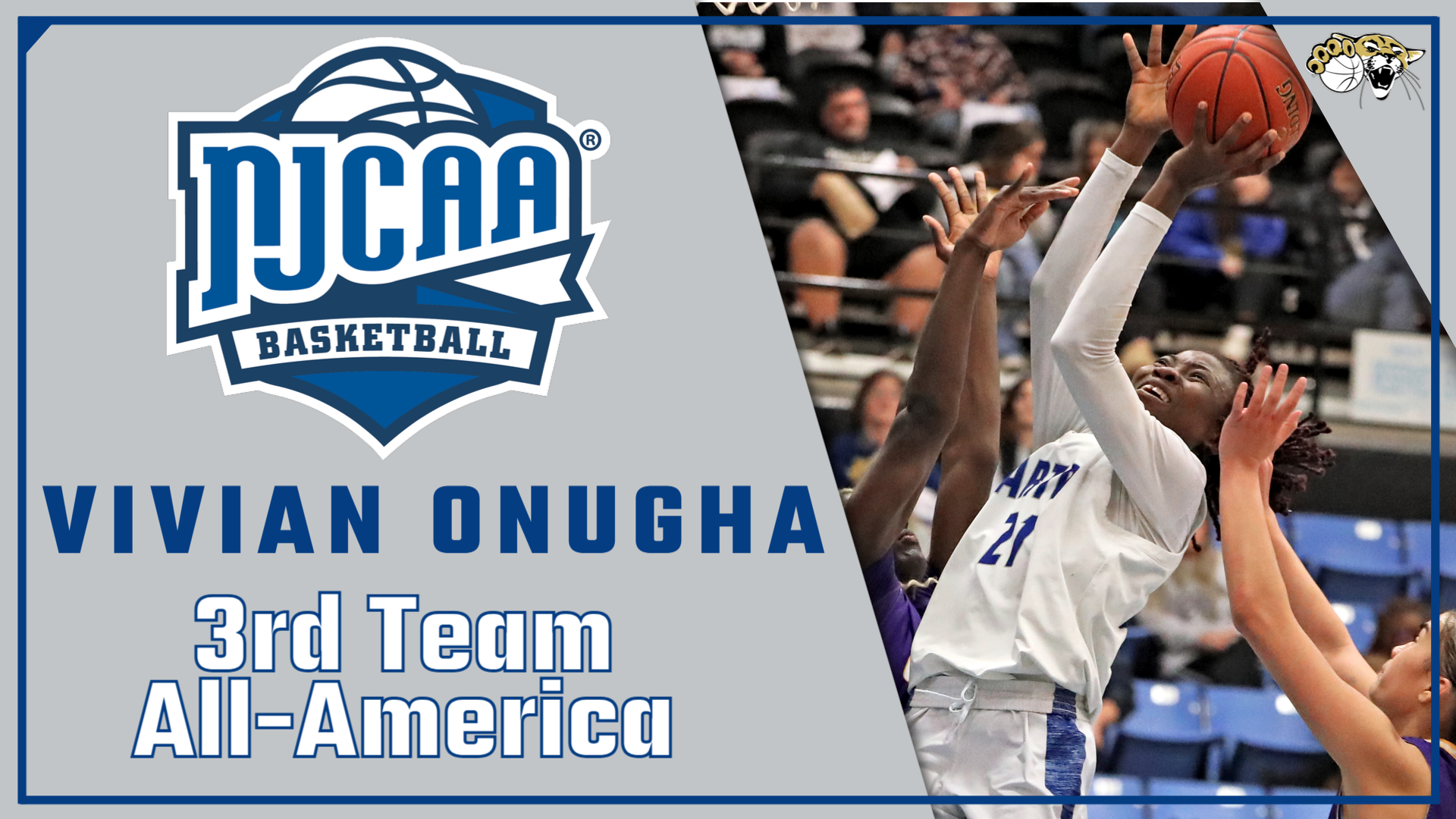 Vivian Onugha of the Barton Community College women's basketball team has been named as a 3rd Team Division I All-America recipient announced today by the National Junior College Athletic Association (NJCAA).