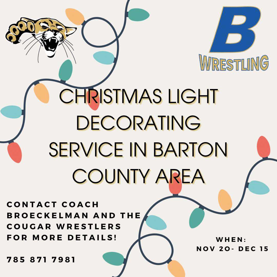 Another Halloween is officially in the books, and the spiders, pumpkins, and ghost decorations can be put away in favor of things a little more jolly. For those unable to put up their own Christmas decorations, the Barton Community College Wrestling team is ready to help out. Coach Nathan Broeckelman said his squad will be assisting residents from Nov. 20 through Dec. 15.