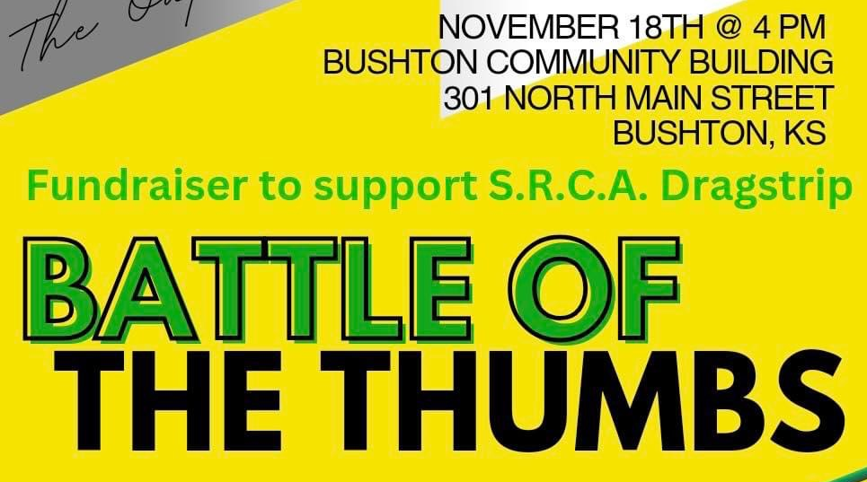 The SRCA Dragstrip may have gone without a race this season, but drag racing is still on the minds of many in and around Great Bend. On Saturday, Nov. 18, The Outlaw Extravaganza is hosting a Battle of the Thumbs fundraiser for the dragstrip at the Bushton Community Building. Club member and race wife Crystal Zink explained why funds are necessary even with no racing.