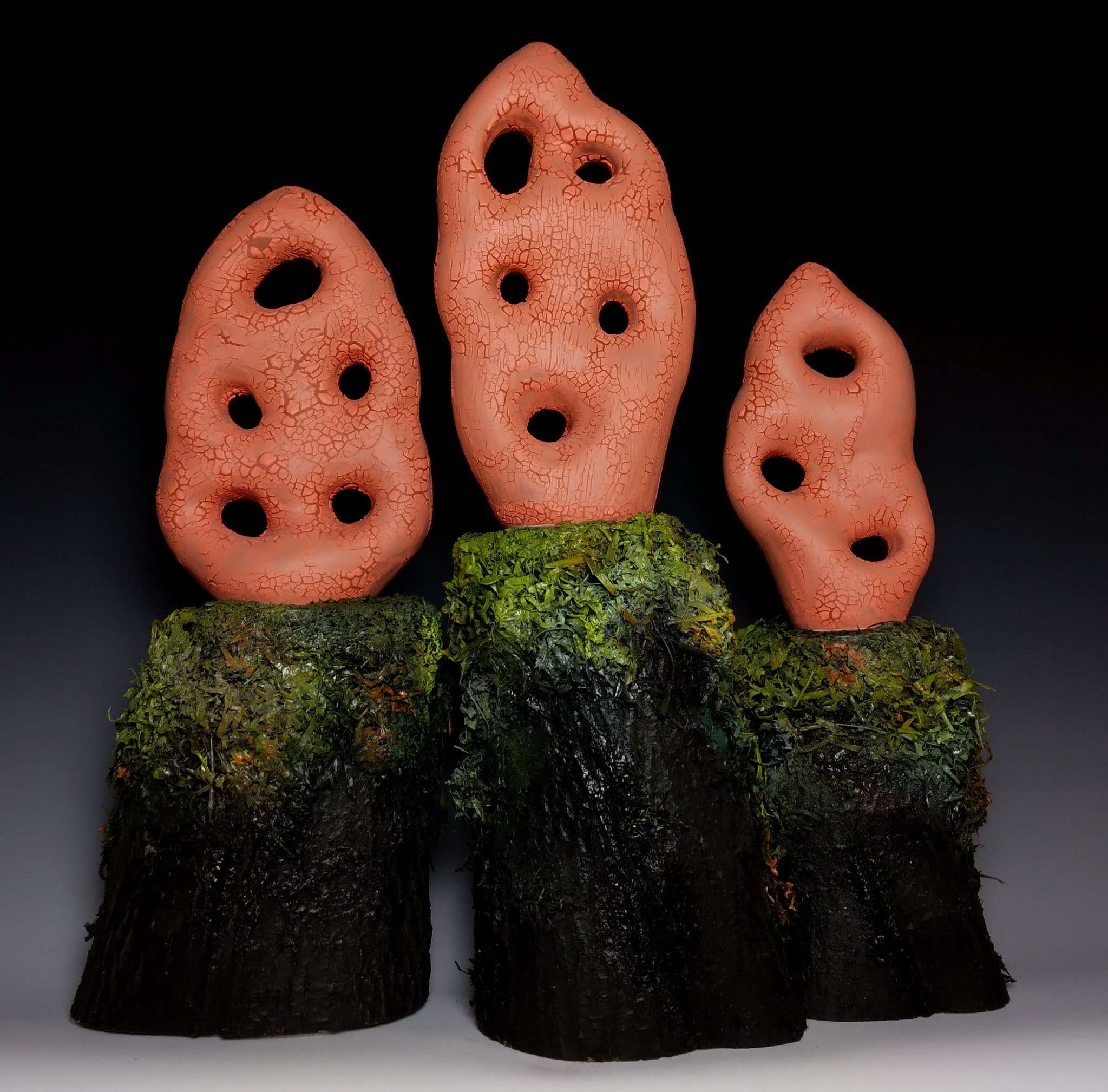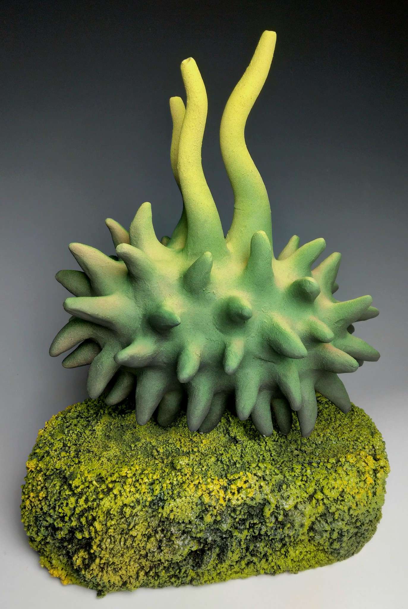“Mark Freeman is a truly talented artist, and we at Barton Community College are fortunate to have him as both an instructor and coworker,” she said. “It is with great excitement that I present his Fort Hays MFA thesis work, 'Terra Et Intus,' at the Shafer Gallery. Mark primarily works in clay and glaze but also explores other mediums such as wood, paint, foam, and organic materials. To quote Mark, he is 'deeply rooted in all aspects of the ceramic process.' As a viewer, I find his glazes captivating and unique within the world of ceramics. Mark diligently strives to replicate the textures found in nature, sometimes creating pieces that seem as though they're covered with microscopic biomes teeming with life. In Mark's own words, he 'will continue this body of work, hoping to raise awareness of the microscopic beauty of the earth and within ourselves that we often take for granted.'"